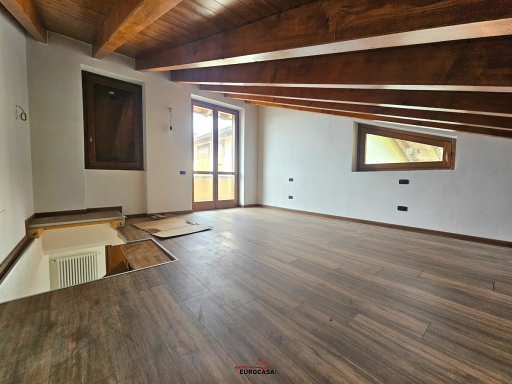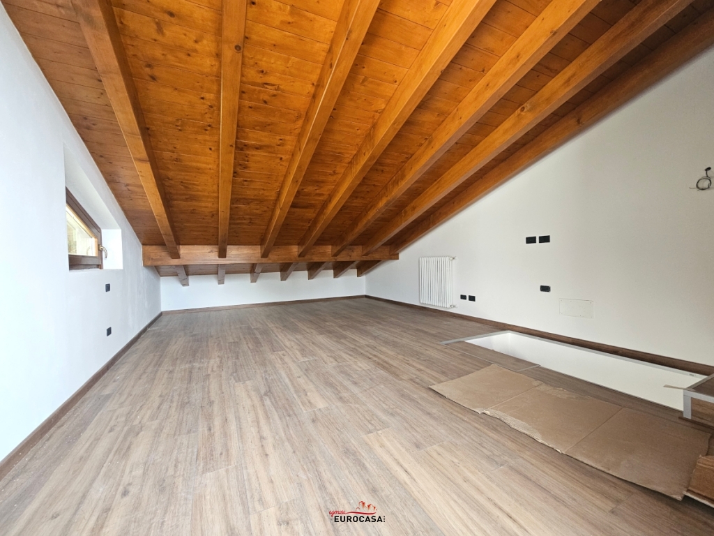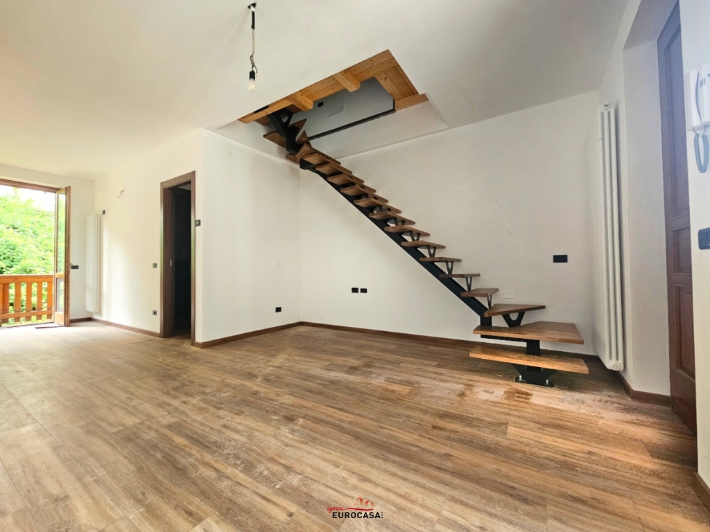 A soli pochi minuti dal centro paese, in posizione privilegiata, immersa nel verde e nella tranquillità assoluta, proponiamo in vendita appartamento nuovo sviluppato su due livelli, caratterizzato da una ottima esposizione solare e da un'impareggiabile vista panoramica. L'appartamento offre al piano principale: un luminoso ingresso, ampia zona living open space dotata di doppia terrazza fronte-retro, disimpegno e bagno. Piano superiore collegato da scala interna: spaziosa mansarda impreziosita da travi a vista in legno e grazioso balcone, attualmente adibita a camera matrimoniale principale. L'unità immobiliare è completata da un ampio box auto già incluso nel prezzo. Una soluzione perfetta per chi cerca la quiete senza rinunciare alla comodità del nuovo. Prezzo irripetibile: SOLO € 75.000. C.En.E - Kwh 152,35