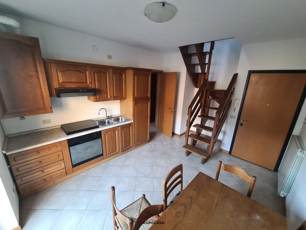 Posizione ben soleggiata, in strada a fondo chiuso disponiamo di ampio bilocale con sottotetto, posto al piano 1° e composto da: ingresso, soggiorno con zona cottura e affaccio su spaziosa terrazza, disimpegno, bagno, camera; scala interna che conduce al piano sottotetto con area relax, camera e ulteriore bagno. Riscaldamento autonomo, arredo cucina e ottime finiture quali travi a vista sbiancate! Zona immersa nel verde nelle immediate vicinanze di un parco giochi, ideale per gli amanti della natura e della tranquillità. AFFARE SOLO € 49.000! C. En. F - Kwh 148,95