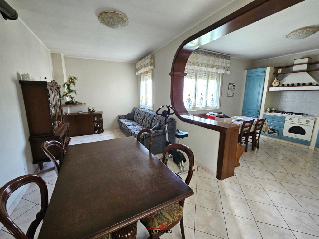Al piano rialzato si sviluppa il primo appartamento di circa 80 mq, con ingresso, luminoso soggiorno, cucina separata, disimpegno, due camere da letto, un bagno e l'accesso diretto alla terrazza e al giardino. Al primo piano appartamento di circa 110 mq, composta da ingresso, salone con cucina, tre camere da letto, bagno e un ampio porticato vivibile coperto di 25 mq che offre un comodo collegamento con il giardino.