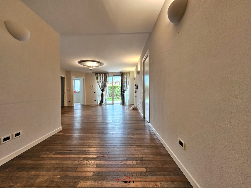 Posizione centrale e comoda ad ogni servizio, in strada a fondo chiuso proponiamo in vendita un raffinato appartamento al piano terra servito da ascensore, posto in elegante e recente realizzazione con eccezionale esposizione solare. L'appartamento si compone da: ingresso, ampio salone con affaccio su porticato coperto e giardino di circa 175 mq completamente pianeggiante e ben curato ideale per godersi momenti di relax all'aperto, cucina separata vivibile, disimpegno, 3 ampie camere e 2 bagni. Completano la proprietà 2 spaziosi box con porta sezionale e cantina. Ottime finiture extra capitolato tra cui: riscaldamento a pavimento, tapparelle elettriche, illuminazione a LED, impianto di irrigazione e sanitari sospesi. Inclusa parte di arredo INTROVABILE TUO a € 290.000! Opportunità unica per chi cerca una soluzione abitativa esclusiva, comoda a tutti i servizi, con finiture di pregio e spazi esterni godibili. C.En.D - Kwh 148,65
