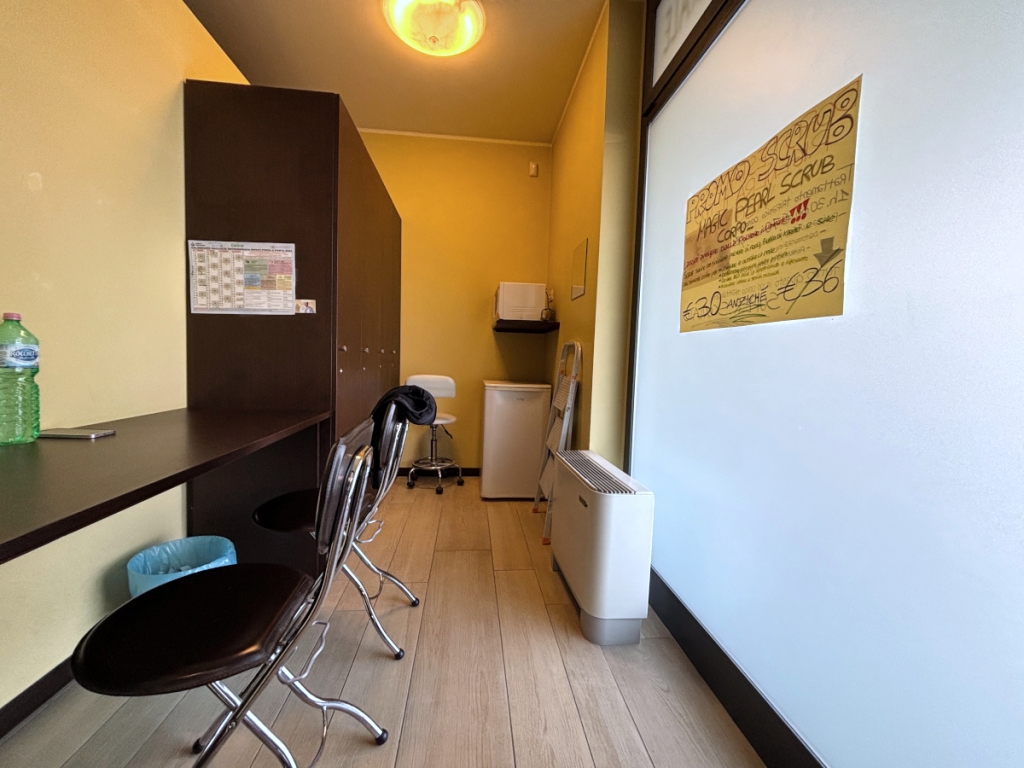 In posizione con massima visibilità, disponiamo di stupendo centro estetico con ottime finiture, posto al piano terra fronte strada, in zona servita da numerosi parcheggi e forte passaggio pedonale. Il negozio si compone da: reception, area attesa clienti, spogliatoi personale, ufficio/cabina manicure e ricostruzione unghie, ulteriore cabina per manicure e ceretta, cabina benessere per trattamenti corpi in vasca nuvola, zona massaggi corpo su lettino ad acqua con cromoterapia, cabina per trattamenti viso, cabina per cerette, bagno clientela, lavanderia, bagno riservato al personale e box auto. Ottimo avviamento dimostrabile, attrezzatura completa e clientela fidelizzata. SOLO € 49.000!